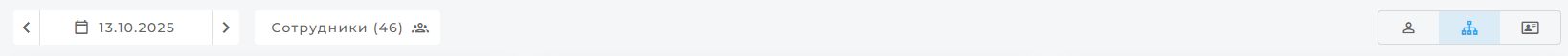 - Переключение группировки списка (Сотрудники, Отделы, Должности)