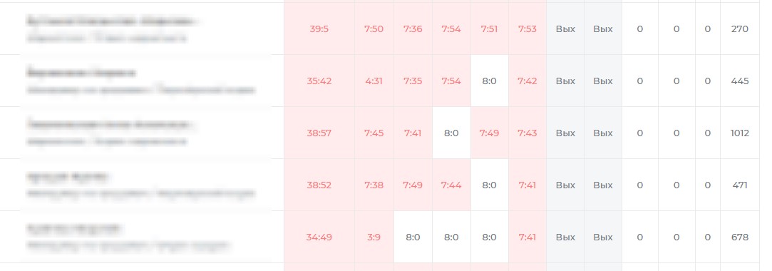 В случае добавления событий в календарь сотрудника они также отражаются и в табеле. Также там показываются выходные, количество больничных часов, отпуск, прогулы и количество инцидентов.