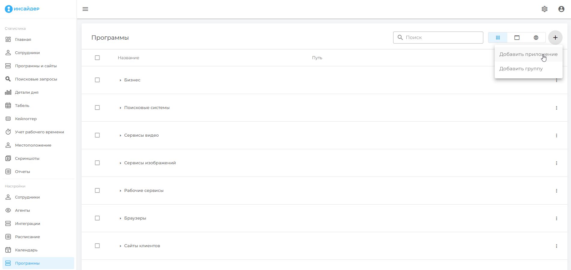 Мониторинг → Программы и сайты