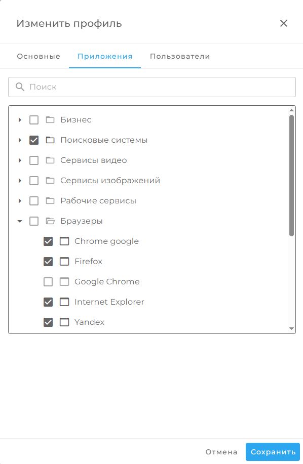 | Приложения | Список сайтов и программ, отмечаемых как продуктивные |